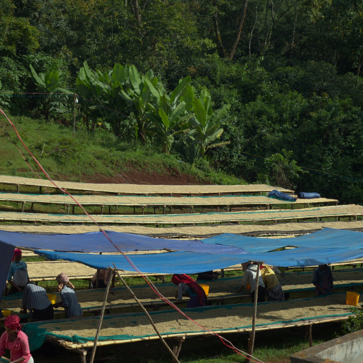 Après le lavage, les grains sont séchés sur les 140 lits de séchage de la station, ce qui permet un séchage uniforme pendant 2 semaines, jusqu’à atteindre le taux d’humidité idéal pour une bonne conservation des grains.